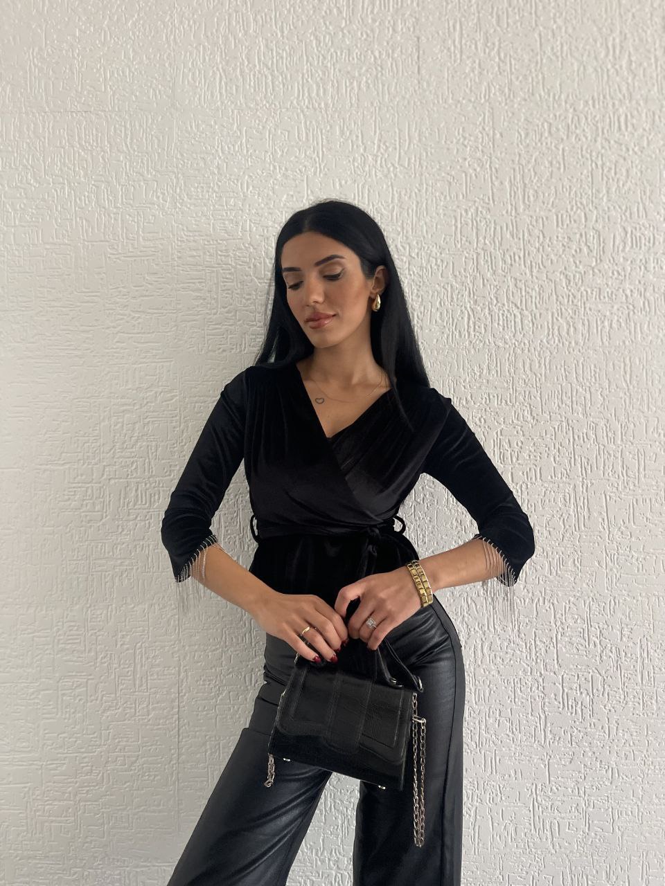 Kadife Taşlı Bluz