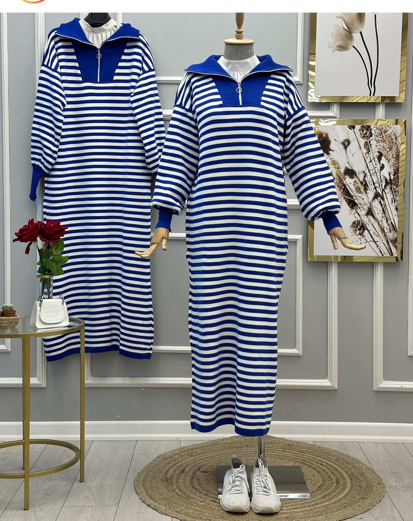 Kadın Yarm Balıkçı Yaka Fermuarlı Elbise