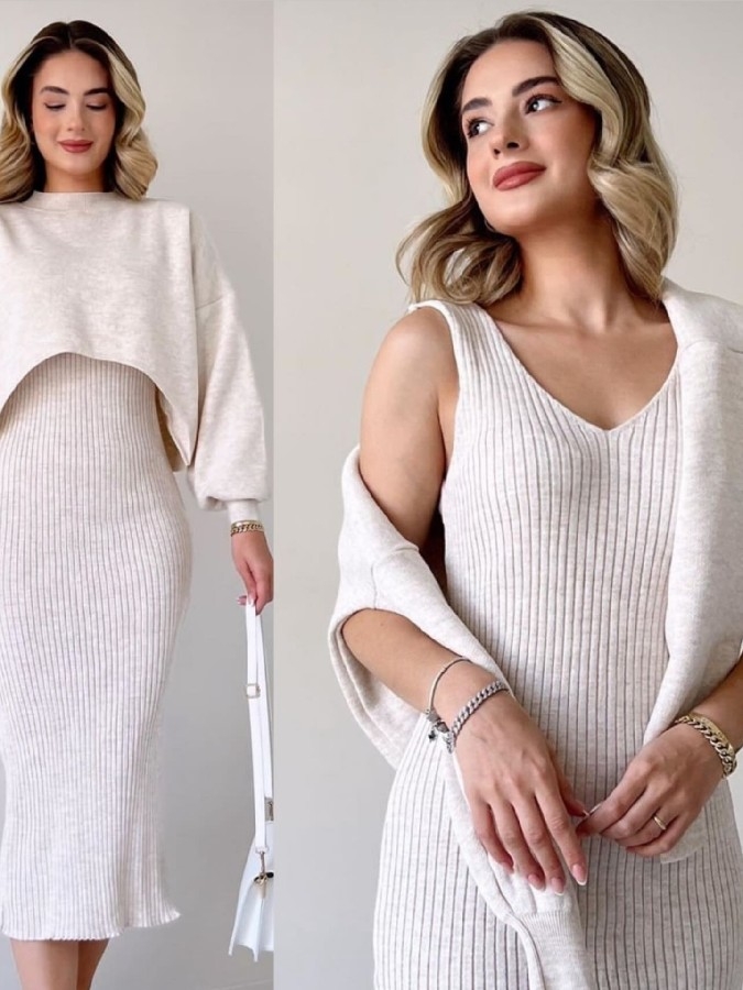 Triko Elbise İkili Takım