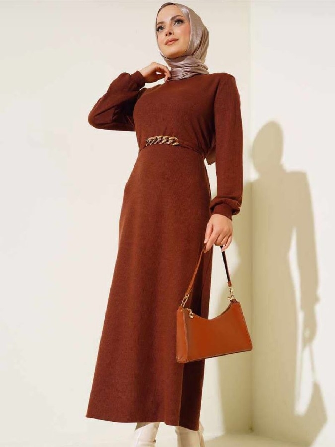 Triko Elbise Zincir Kemerli